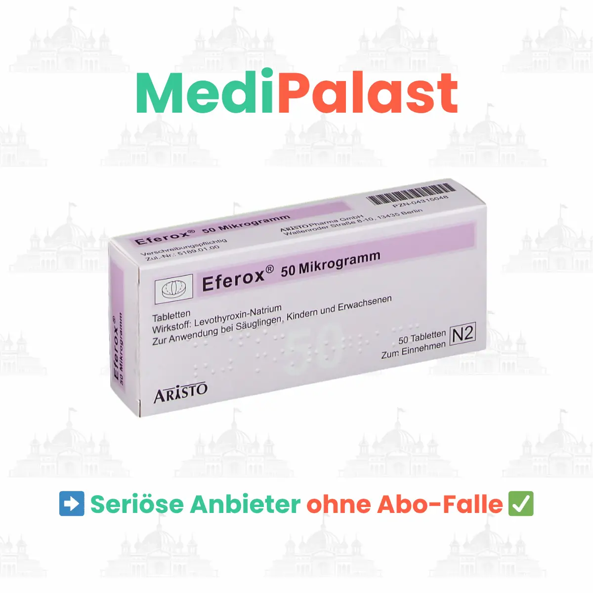 Eferox vom Hersteller Aristo ist ein hocheffektives Schilddrüsenhormon, das zur Substitutionstherapie eingesetzt wird. Es findet Anwendung, wenn die Schilddrüse nicht mehr genügend eigene Hormone produziert, etwa bei einer Autoimmunentzündung wie Hashimoto-Thyreoiditis oder nach einer operativen Entfernung des Organs. Das Medikament ersetzt das fehlende Hormon und übernimmt dessen lebenswichtige Funktionen im Körper.