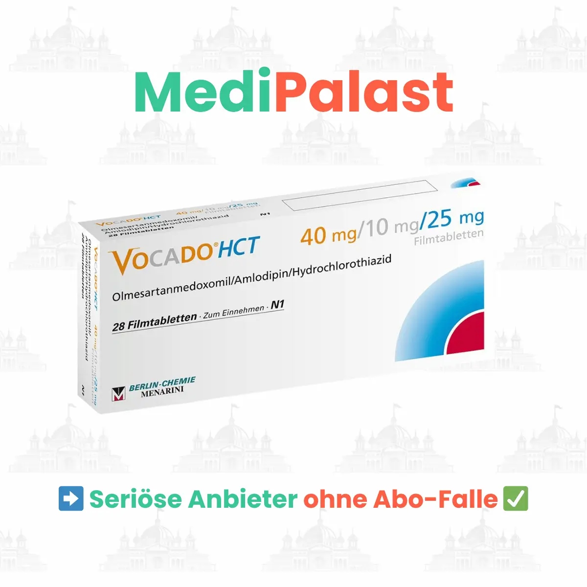 Vocado HCT ist ein hochwirksames Medikament der Berlin-Chemie AG zur Therapie der Hypertonie. Es wird eingesetzt, wenn eine Behandlung mit nur einem oder zwei Wirkstoffen nicht ausreicht, um die Druckwerte im Blut auf ein sicheres Niveau zu senken.