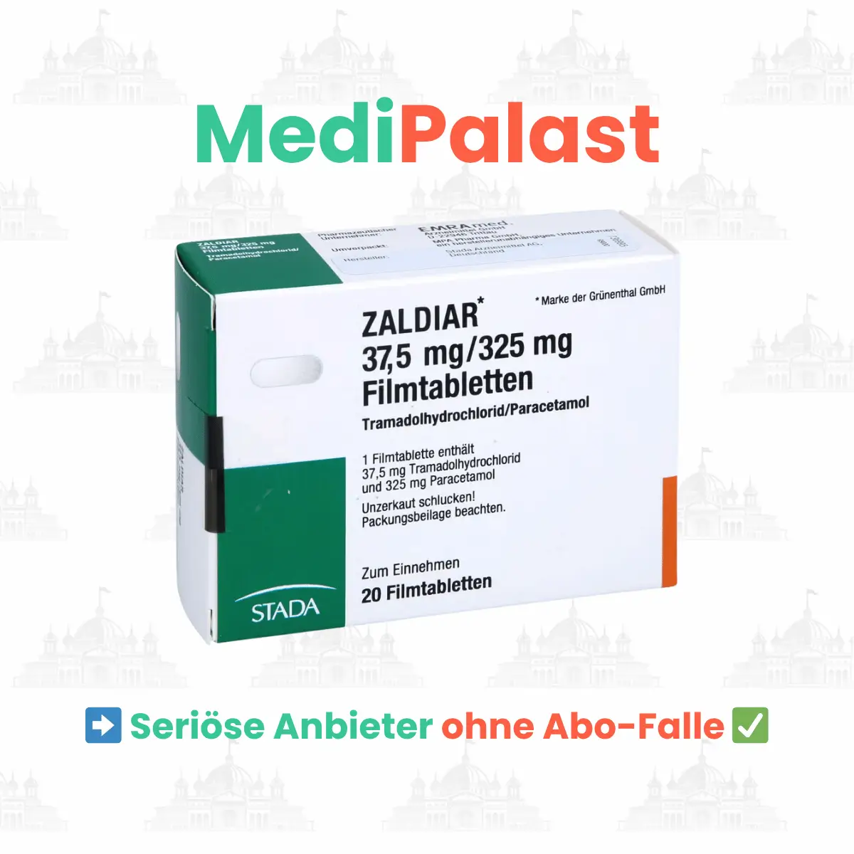 Ohne gültiges Rezept ist es nicht möglich, Zaldiar kaufen zu können. Von illegalen Fake-Shops, die dir Zaldiar rezeptfrei anbieten, möchten wir dir dringend abraten. Du riskierst damit Gesundheit und rechtliche Konsequenzen. Zudem drohen dir finanzielle Risiken und deine Daten werden meist verkauft und missbraucht.
